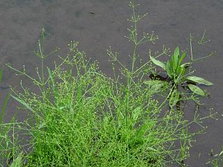 湿地には咲きかけのヘラオモダカ(左)やらヒレタゴボウ(右)やらが見つかります。