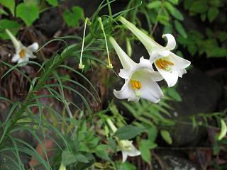 歩いていくと、ごちゃっと咲いているシンテッポウユリ(右)にも遭遇。