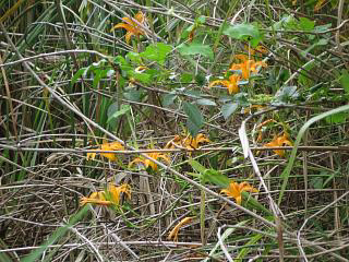 ちょっと近づけない場所でしたが、ノカンゾウ(左)が咲き並んでいたりしました。