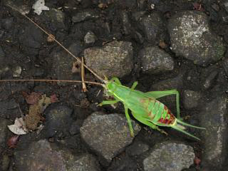 なぜか地面にアオマツムシ幼虫(左)がのんびりしていたりしました。