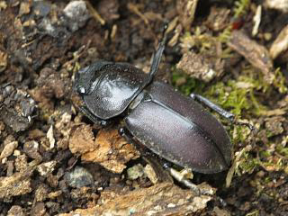 最初はクワガタ系の♀(右)の死骸を発見。これはノコギリクワガタかな?