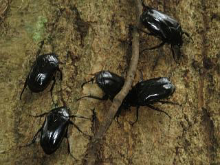樹液のにじんでいるところをよく見ると、なんか不思議な甲虫が大量に。