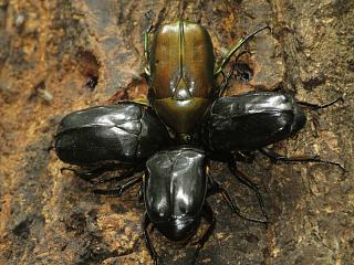 面白かったのは、樹液に集まっていたクロカナブン&カナブン(右)。