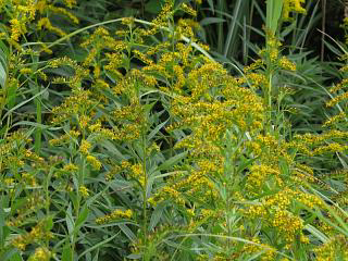 奥まった方にはオオアワダチソウ(右)がゴチャッと咲いているエリアもあったり。