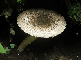 ガックリしていると面白げなキノコ類(右)を発見。これなんて種類だっけ?
