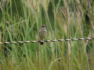 かなり遠かったんですが、ノビタキ幼鳥(右)なんかもひょっこり見つかったりします。