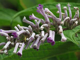 花のドアップ(左)も撮ってみました。筒花でヘンな形ですよね。
