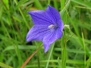 さらに周辺をウロウロすると、キキョウ(左)をいくつか発見。もう咲いてるのね。