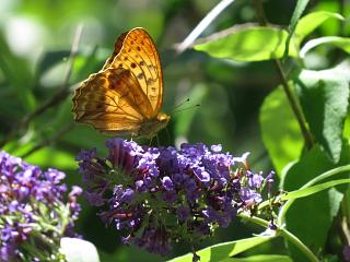 さらに戻っていくと、フサフジウツギに次はメスグロヒョウモン(左)がご登場。