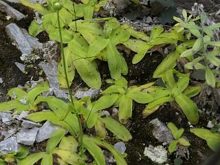 岩場の金網の内側でしたが、ムシトリスミレ(右)が大量にあったこと。