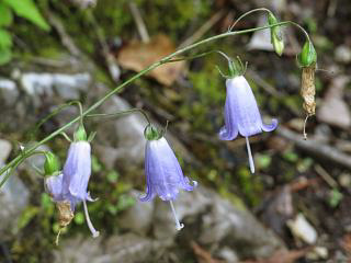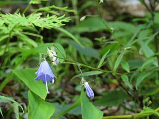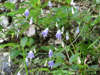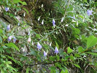 んで、岩場をじっくり見ながら戻っていくと、シライワシャジンがまとまって咲いている