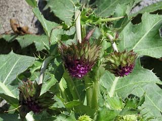 あたりにはここでも花芽をつけ始めた感じのフジアザミ(右)があったりしました。