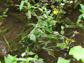 場所を変えると、水中で咲いているオオハンゴンソウ(右)があってビックリ。