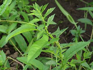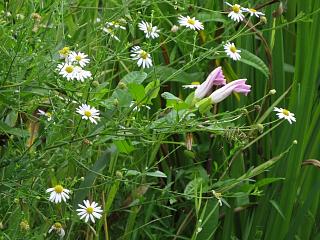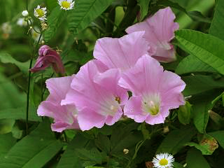 んでちょっと大きく移動してやってきた場所では、ナンバンハコベ(左)やらヒルガオ(右)やらが