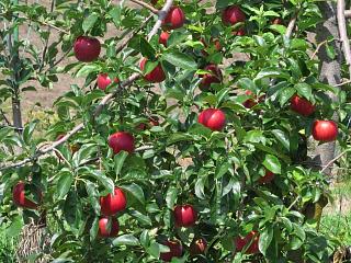 悔しいのであたりをうろうろすると、真っ赤に熟したリンゴ(右)があったりします。