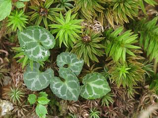 極小サイズのフイリフモトスミレ(左)もありました。苔と比べるとサイズ感わかりますかね。
