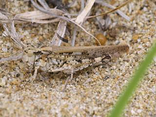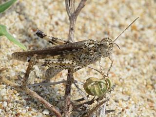あとはのんびりしていたヒロバネヒナバッタ(右)を見たくらいで第一陣は終了とし