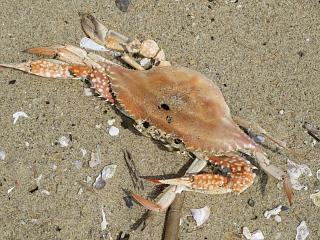 真っ赤になったガザミ(左)もありました。再び草地に戻ると、えらく斑紋の小さな