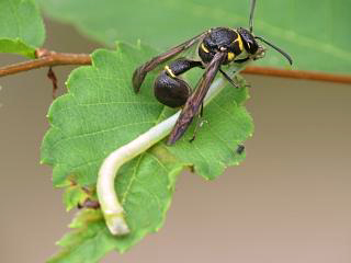 歩きはじめるとイモムシを狩っているドロバチ系(左)に遭遇してビックリしましたが、