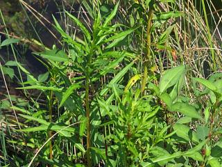 とりあえず面白そうな水辺を歩いていくと、タコノアシ(右)を発見。