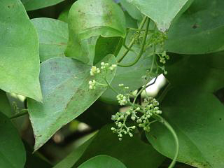 さらに面白い感じに咲いているアオツヅラフジ(左)なんか見ながら歩いていくと、