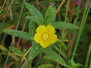 飛来アカネには早すぎるだろうけど、と思いながらまだご健在のミズキンバイ(左)を