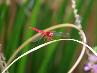 さらに粘れど、かなり遠くにショウジョウトンボ(左)を見つけたくらいで、