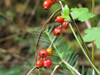 真っ赤な実を大量につけているヤブサンザシも見つかりました。