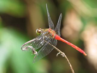 マユタテアカネ(右)もひょこッとご登場。曇天でも元気に活動しててくれてありがとう。