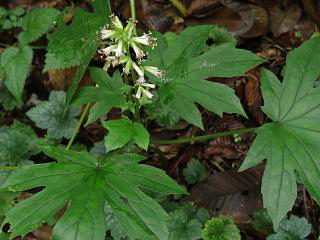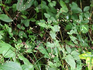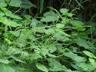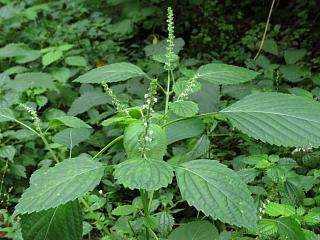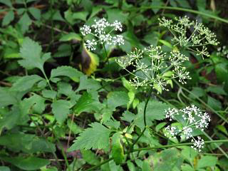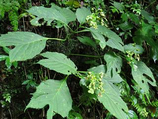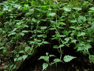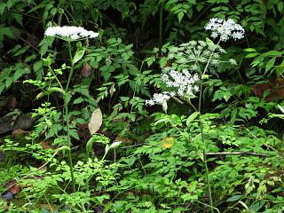 次にやってきた山道ではミヤマイラクサ(右)なんかごちゃっと群生していたりも。