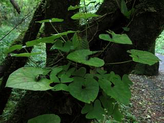 面白かったのは、�樹洞から生えてたフタバアオイ(右)。