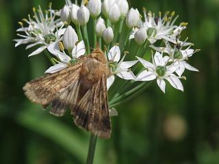 ちょっと見ていると、オオタバコガ(右)がふわりと訪花されたりとか。