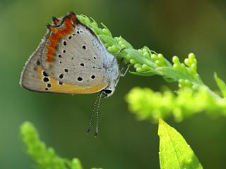 さらにうろうろすると、ベニシジミ(左)は早くも休眠モードに。
