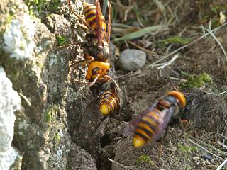 なんかオオスズメバチ(右)がゴチャッと集結している場所もありました。