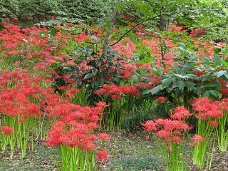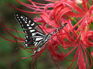 ヒガンバナに飛来したナミアゲハ(左)なんか撮りつつさらに歩いていくと、
