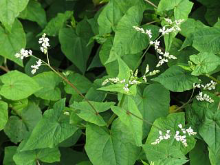 ひょっこりとアオスジアゲハ(左)が登場されたり、咲き始めのシャクチリソバ(右)が