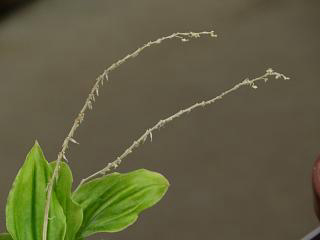 シマホザキラン(左)は枯れた花穂だけが残っていました。