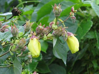 でも、ふくらみ始めたオハマボウ(左)やら、リュウキュウボタンヅル(右)やらを発見。