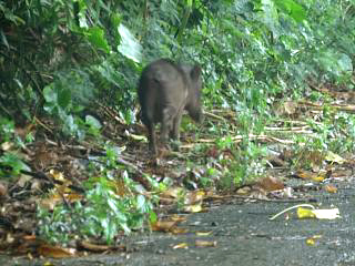 さらにじっくり探していくと、ひょこっとリュウキュウイノシシの幼獣(右)を発見。