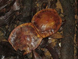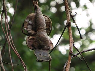 沢沿いではコウシュンモダマらしき実を、樹上にぶら下がっている断片(左)と