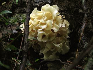 というわけで、あらためて林の中をウロウロすると、ハナビラタケ(左)を発見。