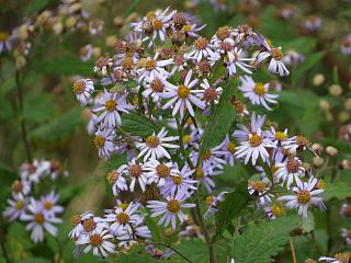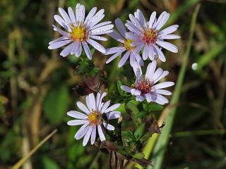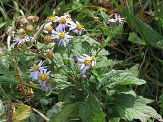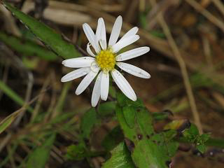 最初の場所にもどると見慣れない野菊類(左)を発見。ユウゼンギクの白花?