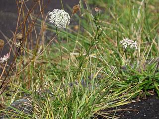 水辺には面白そうなスゲ類(左)やら、ノラニンジン(右)やら