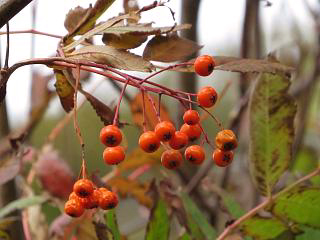 これもきれいに色づいたナナカマド(右)なんかも見つかります。