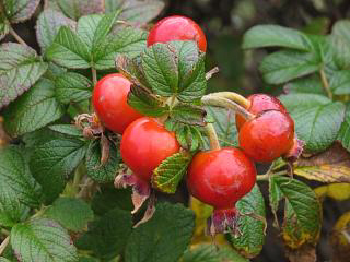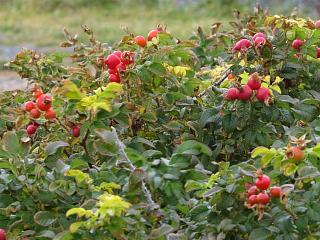 さらにちょっと大きめに移動してみると、ハマナスがごちゃっと実をつけている