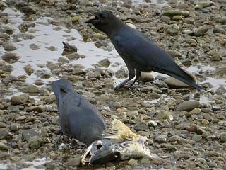 あたりにはお食事中のハシブトガラス(右)もパラパラといたりとか。