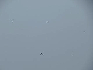 上空には大量のアマツバメ(右)が飛び交っていましたが、雨の降る中で