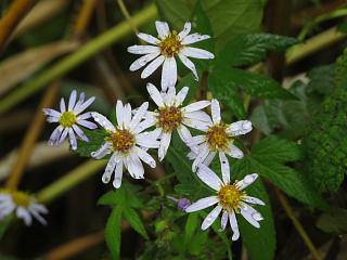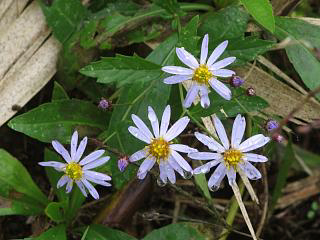 そのあたりからカントウヨメナ(右)がポツリポツリと見つかるようになります。