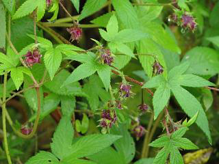 カナムグラ(左)も可愛らしい実をまとめてつけていらっしゃいました。
