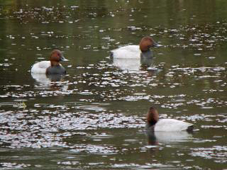 そのあたりでイイ雰囲気の池をのぞき込むと、ホシハジロ(右)を発見。